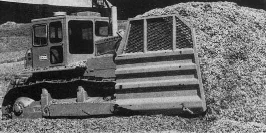 Pelle à déplacer les copeaux. - Le Chip Bowl Balderson B9S, monté sur un caterpillar D9C offre une nouvelle solution au problème du déplacement en vrac, en particulier des copeaux. D'après les fabricants, cette pelle peut déplacer en deux opérations plus de copeaux que deux pelles en U de 5,8 m montées de la même façon en trois fois. Le Chip Bowl de 7,3 m a une capacité de 46 à 54 m³.