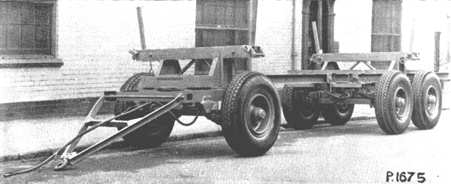 Esta proyectado para el transporte de madera inglesa. Lleva dos ruedas en el eje delantero y 4 en los dos ejes traseros. El remolque está construído con perfiles de acero laminado en U, unidos entre sí por soldadura eléctrica, y esta dotado de neumáticos sencillos de 12,00 X 20. El larguero central presenta una serie de agujeros de suerte que la distancia entre los ejes puede ajustarse desde un mínimo de 7,3 m (24'). Cuenta con dos crucetas o puentes, uno encima del eje delantero y otro arriba del tren posterior de ruedas. Los frenos son de accionamiento servomecánico.