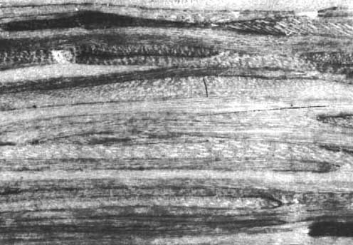 La figure 3 montre la nature anisotropique du bois considérée du point de vue de l'ingénierie. Là encore la plus grave discordance réside dans la différence de résistance à la traction dans le sens du fil ou en travers du fil, différence de l'ordre de 1 à 50 pour le cas du bois de sapin Douglas net de défauts apparents. Lorsqu'il y a des défauts dans les sciages destinés à la construction, ils provoquent une diminution considérable de la résistance à la traction parallèle, mais malgré le manque de données suffisamment précises, ils ne causent, semble-t-il, que des changements mineurs dans les autres propriétés.