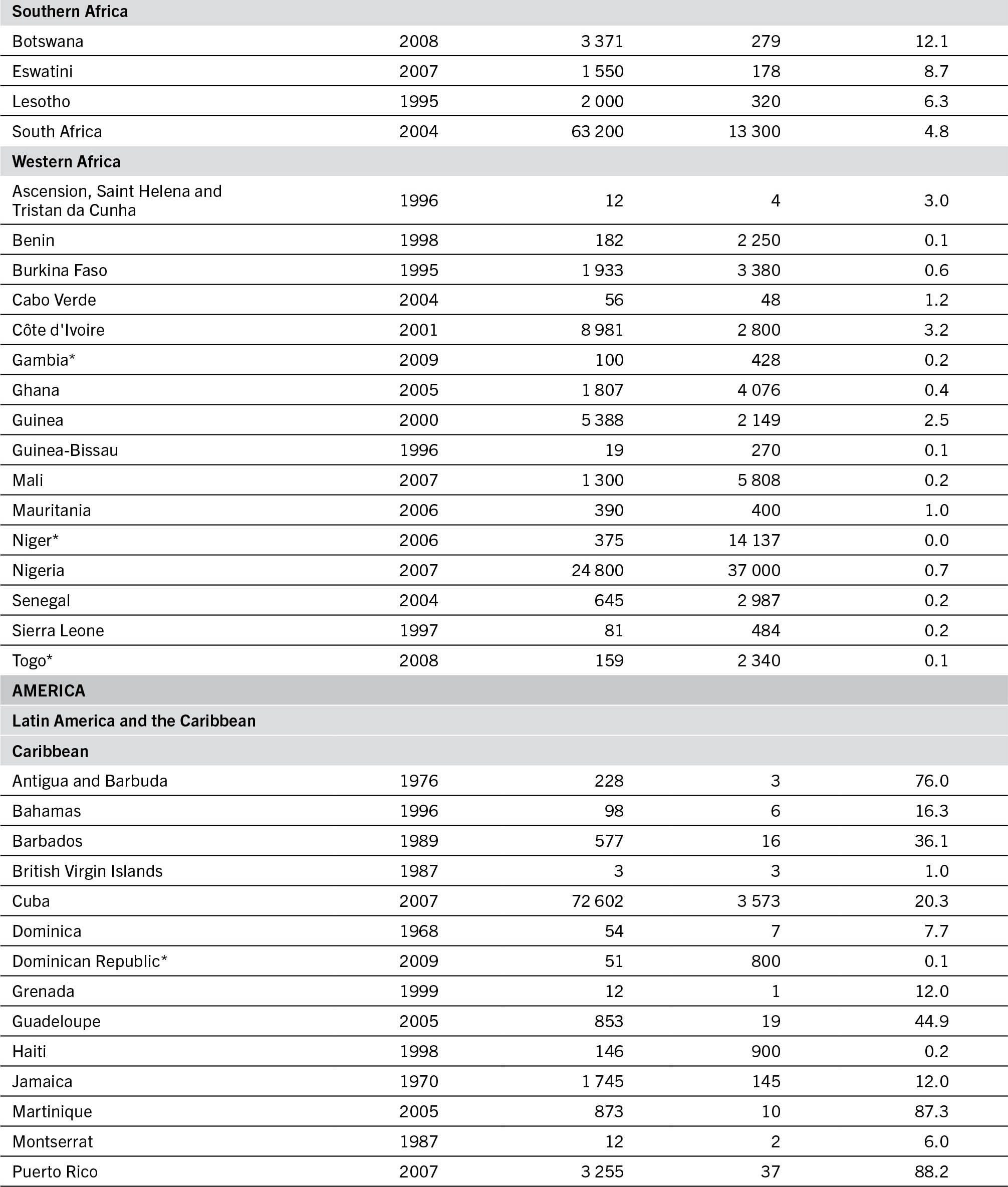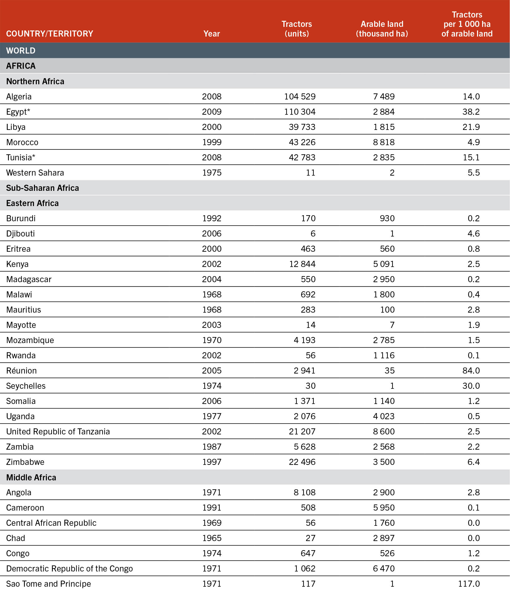 TABLE A2.1TRACTOR USE PER 1 000 HECTARES OF ARABLE LAND, LATEST YEAR AVAILABLE