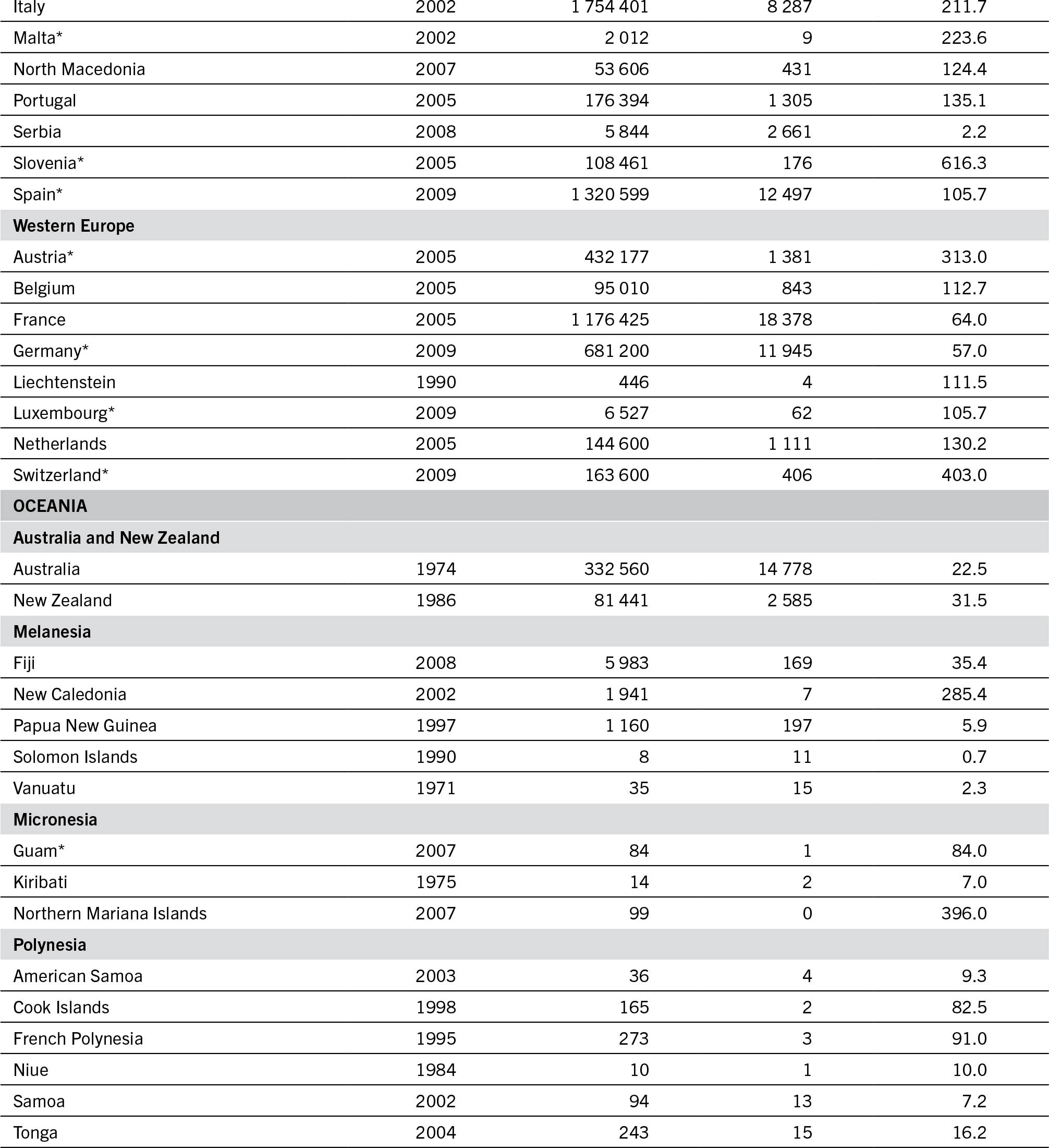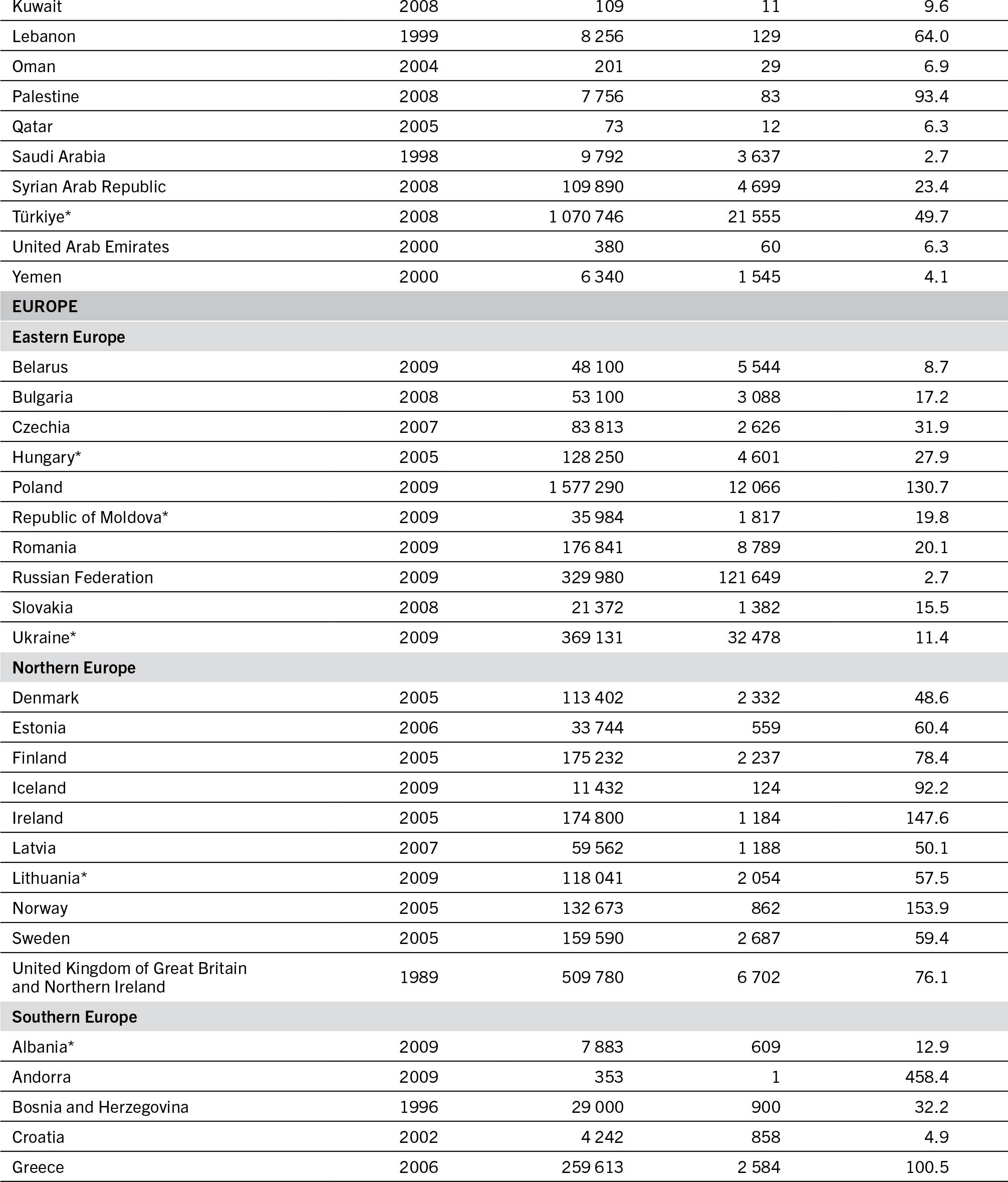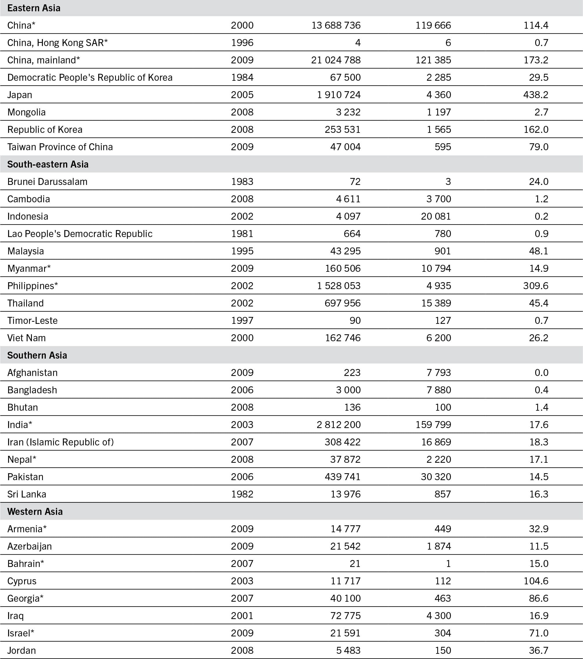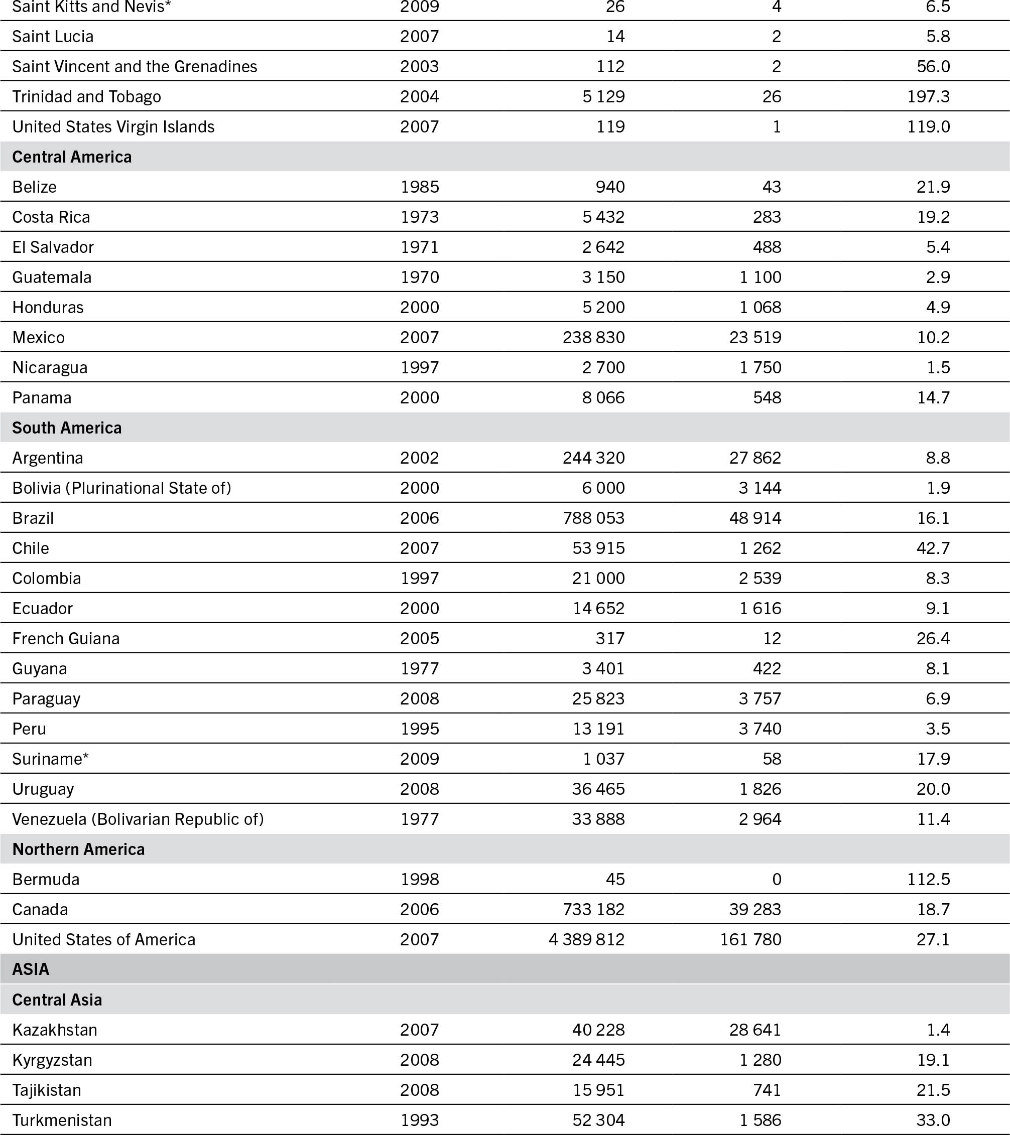 NOTE: The data collected refer to three types of tractor (wheel, crawler and track-laying); for countries marked with an asterisk (*), a fourth type of tractor (pedestrian tractor) was included as of 2000.
