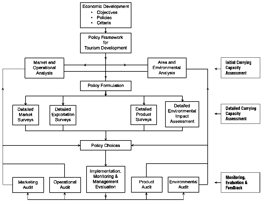 Carrying capacity should be considered at the three levels of policy formulation, detailed studies, and implementation and monitoring (Figure I) (McIntyre et al, 1993).
