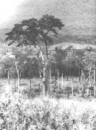 The remaining forest supported an average of 59 trees per ha and 30 m3 per ha of marketable timber volume. Illegal felling by timber merchants, farmers and charcoal producers was widespread. The disturbed forest contained hardly any trees of commercial value. Some of the agricultural land and swiddens had recently been abandoned because of soil exhaustion and were being invaded by imperata grasses.
