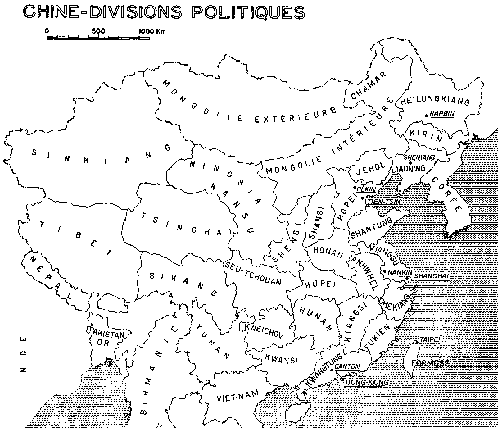 FIGURE 1 - Carte montrant les divisions politiques de la Chine.