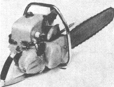 Caractéristiques: Largeurs de coupe: 46 cm, 58 cm, 71 cm; poids sans guide lame: 12,7 kg.; carburateur à diaphragme; moteur Villiers spécial avec valve rotative donnant la puissance maxima à la vitesse de 5 500 t/min. Puissance produite en action 4,5 CV. Double filtre à eau dans le réservoir à carburant et filtres à carburant on 3 points du circuit - tous pour éliminer l'eau et protéger complètement contre la formation de cristaux de glace dans le carburant. Embrayage centrifuge permettant de travailler d'une seule main. Démarreur - enroulage automatique amovible avec poulie incorporée permettant le démarrage à la ficelle. Lubrification de la chaîne contrôlée du pouce et efficace on marche.