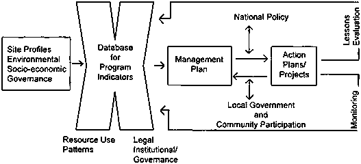 Information flow is essential for an integrated coastal program which is designed to learn by doing and to refine the management plan through a monitoring and evaluation mechanism. It shown in Figure 2. This general system is functioning in Sri Lanka.
