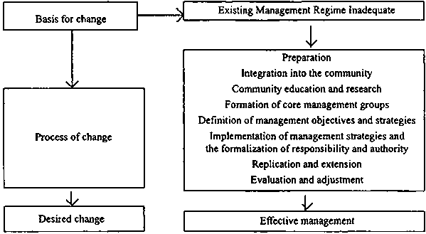 2. A process of change within a resource user and management community must be guided and monitored to achieve effective reef conservation. This process is summarized in Figure 4.
