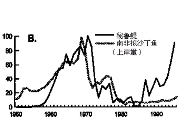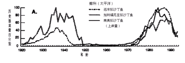 Ëæ×ÅÓãÀàÖÖȺ³¤ÆÚ±ä»¯µÄ×ÊÁÏ»ýÀÛµÃÔ½À´Ô½¶à£¬Ò»¸öÒýÈËעĿµÄ¹æÂÉÖð½¥ÏÔ¶³öÀ´¡£ÊÀ½çÐí¶à´óµÄÓãÀàÖÖÈºËÆºõÊÇÔڳʽÚ×àÐÔµÄÏû³¤£¬±Ë´Ë¼äÓÐÏÔÖøµÄͬ²½ÐÔ¡£Ê×ÏÈÌá³öÕâÒ»µãµÄÊÇÈÕ±¾ÈË´¨Æé¡£ËûÓÚ1983ÄêÔÚFAOר¼Ò×Éѯ»áÒéÉÏÖ¸³ö£¬ÔÚ̫ƽÑóÉϱ˴ËÏà¾àÒ£Ô¶µÄµØÇøµÄɳ¶¡Ó㣨öî¿ÆÉ³ÄÔÓ㣩ͬ²½Ôö¼õ¡££¨¼ûSharp and Csirke£¬ 1983£©¡£×Ô´¨ÆéµÄÎÄÕ·¢±íÒÔºó£¬ËûÖ¸³öµÄÕâÖÖ¹æÂÉÂű»Ö¤Êµ£¬°üÀ¨½ÓÏÂÀ´Ò»¶Îʱ¼äÀïÓÖÒ»´Î·¢ÏÖµÄÖÖȺÊýÁ¿Í¬Ê±Ôö¼Ó¶øºóÓÖͬʱͻȻϽµ µÄÇé¿ö£¨¼ûͼC3.A£©¡£