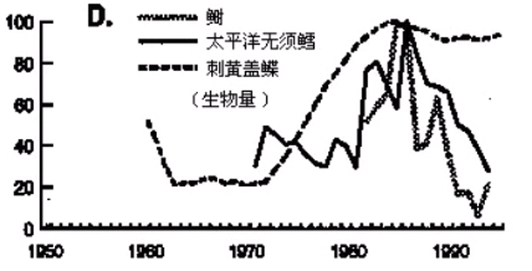 ËäÈ»×î½üµÄɳ¶¡Óã¡¢÷–Óã¡¢´óÂé¹þÓãµÄÉϰ¶Á¿¿ÉÒÔ´óÌå±íÃ÷ÖÖȺµÄ´óС£¬¶øÆäËûµÄȺÌå£¬ÌØ±ðÊÇÄÇЩÓв¶ÀÌÏÞ¶îÖÖȺ£¬È´²»ÊÇÕâÑùµÄÇé¿ö¡£µ«ÊÇ£¬Èç¹ûÓÐÁËʵ¼ÊÉúÎïÁ¿µÄ²â¶¨Öµ£¨ÀýÈ籱̫ƽÑóµ×²ãÓãÀàµÄ´óÖÖȺ£©£¬³£³£±íÏÖ³öÏàͬµÄÇé¿ö(ͼ C3.D ºÍ E)¡£¶øÇÒ£¬ÎÒÃÇÖ»Òª¿´Ò»¿´Õû¸öÊÀ½çÉÏÆäËûÓãÀàÖÖȺÒÔ10ÄêΪʱ¶ÎµÄˮƽÉϵı仯£¬¾ÍÄÜ¿´³öËüÃÇͬÕâÆÕ±éµÄ¹æÂÉÏ൱µÄÒ»Ö¡£