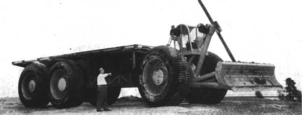DEMOLEDOR DE ARBOLES . - Des brozadora gigante proyectada para desenraizar árboles y arbustos de gran porte. Los árboles de gran tamaño se abaten con la cuchilla elevada unos 3 m. (10 pies) en el aire. Los árboles de tamaño mediano y las matas se desarraigan y desemboscan en una operación continua con la cuchilla baja.