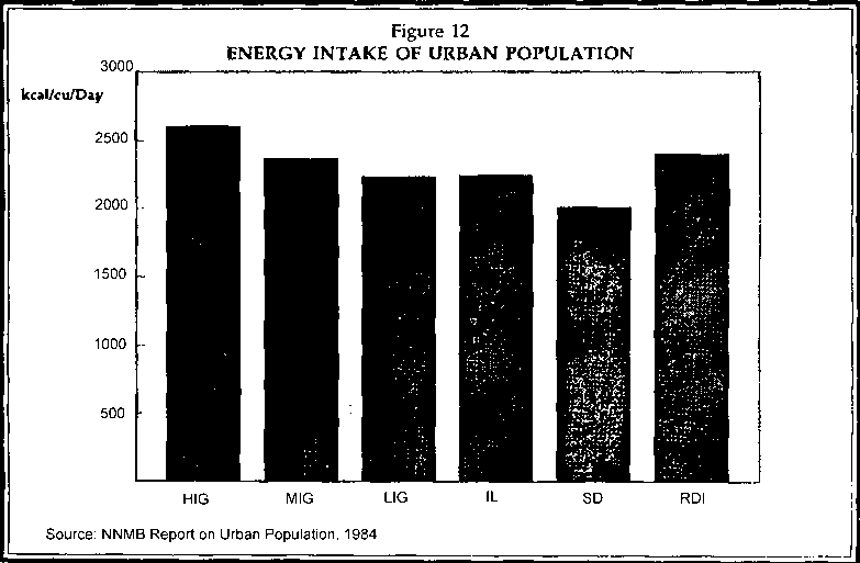 The energy intake among rural and urban proxy income groups is shown in Figures No. 11 and 12.
