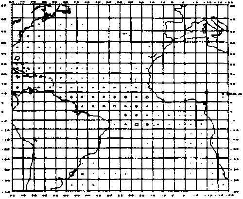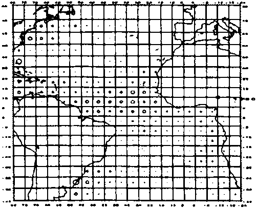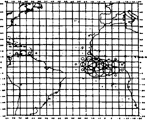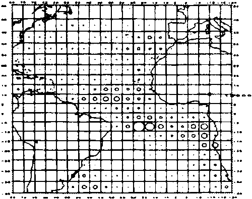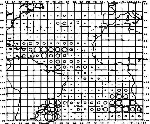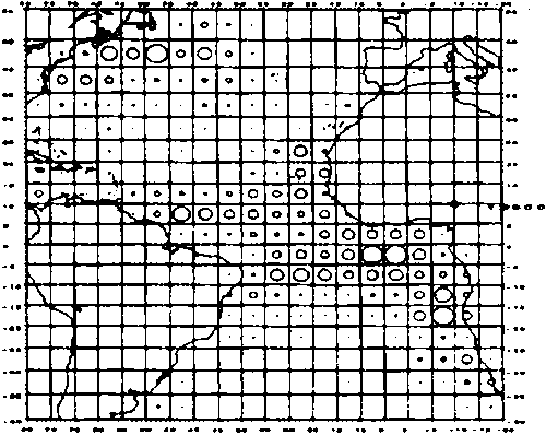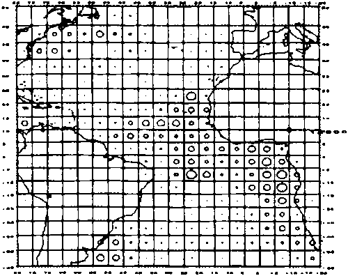 Figure 10. Geographical distribution of swordfish catches by surface fisheries, average for 1983-93.