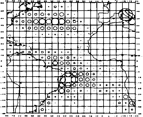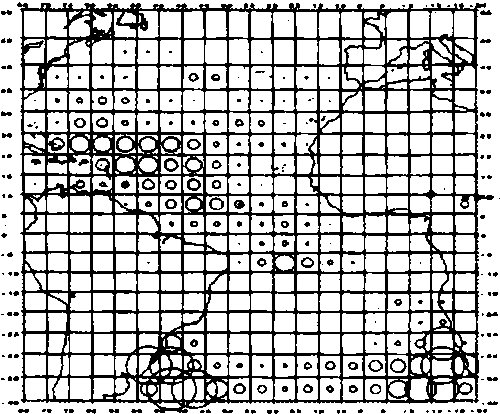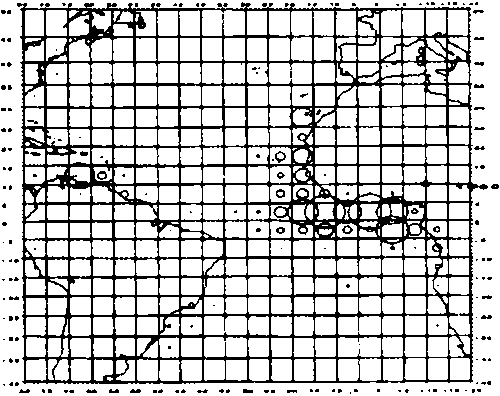 Figure 2. Geographical distribution of bluefin tuna catches by surface fisheries, average for 1983-93.