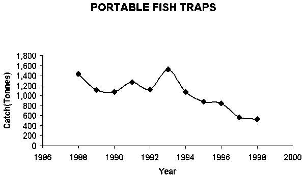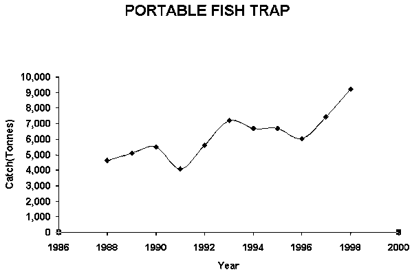 Historically, the main objective of fisheries management has been the conservation of fish stocks (King 1995). In order to ensure the long-term sustainable use of fisheries resources, the Department of Fisheries had tried its best to manage them. The fisheries laws was established in 1980 to manage and allocate these resources for earning income for the nation and providing the Cambodian people with protein-rich food in the form of fish. The law mostly dealt with passive management objectives, in which input control is the main management tool. For example, the law strongly prohibited all kinds of illegal fishing gear such as light fishing, electro-fishing and muro-ami (Ly, 1990). It also prohibited fishing in the closed season (fish spawning season). Fish sanctuaries in freshwater water systems were also closed during fishing season to commercial and medium-sized fisheries but not to small-scale fisheries. Clearing or cutting down inundated forests and coral mining was prohibited by the fisheries laws. Furthermore, the fisheries department has acquired its own fisheries inspectors and patrol boats to monitor fishing activities in Cambodian waters. Touch (1995) mentioned that the department tried to increase and promote fisheries facilities and human capacity to manage fisheries resources. However, the law is very weak and passive, and it will be necessary to carefully revise it in order to ensure adaptively and scientifically optimal catches without decreasing the stocks. The law is being revised by the Department of Fisheries in collaboration with the World Bank, which provides funding.