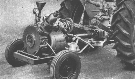 El dispositivo Morrison de bombeo y de riego por aspersión, accionado por la toma de fuerza del tractor, se utiliza cuando existen varios puntos de agua en la finca y se quiere mantener baja la inversión de capital. Es posible así utilizar el tractor para el riego. La fuerza utilizada es parecida a la que proporciona el motor. Los engranajes de la bomba deben ser de tamaño y de resistencia iguales a los del tractor. La bomba que se elija no debe recargar el motor del tractor. El conjunto de bombeo se monta en un remolque de dos ruedas hecho de acero. El conjunto completo va provisto de dos ruedas con neumáticos.