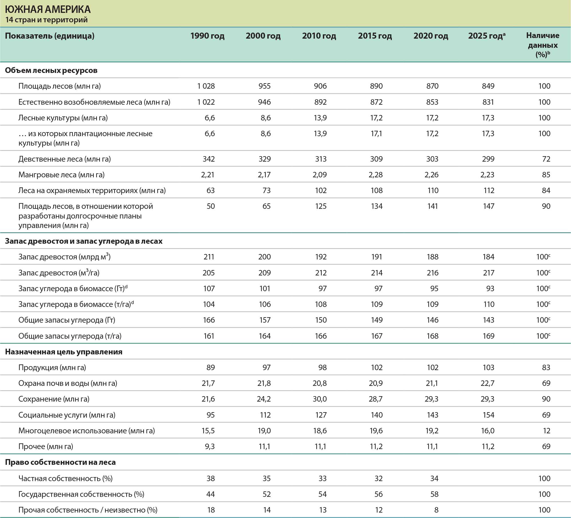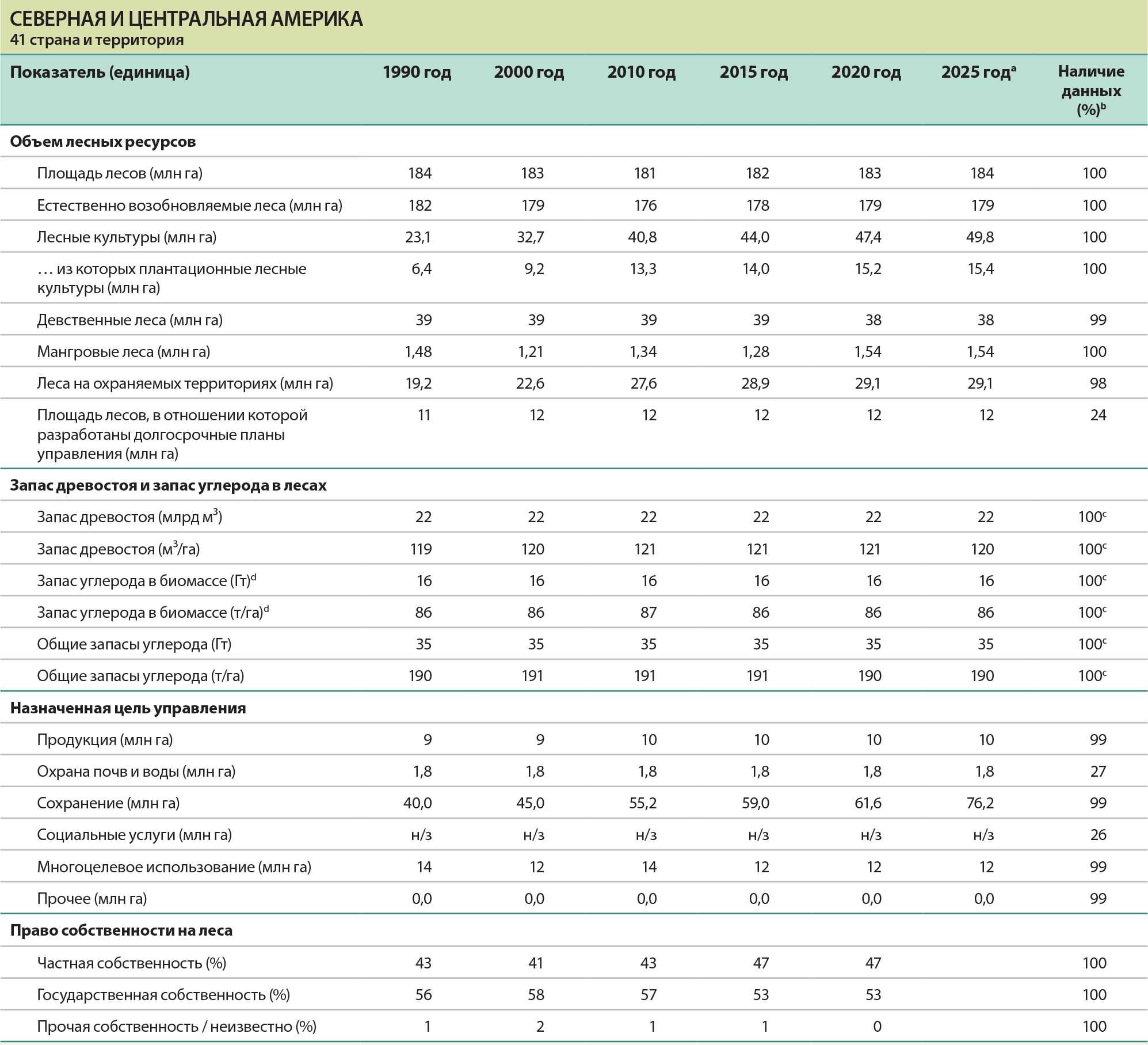 b Наличие данных относится к доле площади лесов, приходящейся на страны, представившие данные.