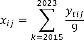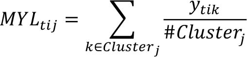Mean yield level of item i, in cluster j in year t.