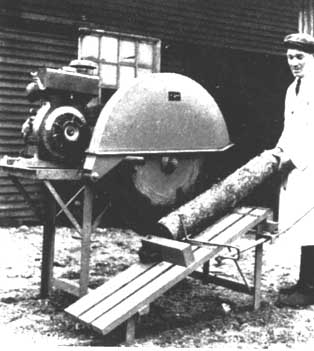 "LA FORESTIÈRE ERVE", to out poles, fuelwood, pulpwood, pitprops etc. into desired lengths: diameter of saw blade 60 cm.