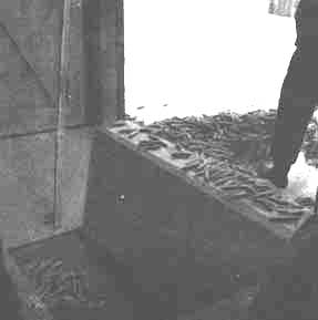 En los dos tipos de hornos últimamente mencionados, los conos se sacuden según caen de una bandeja a otra, de modo que casi todas las semillas se desprenden de los conos. Las semillas se recogen en dispositivos especiales colocados debajo de la bandeja inferior, mientras que los conos se someten a nuevo tratamiento.