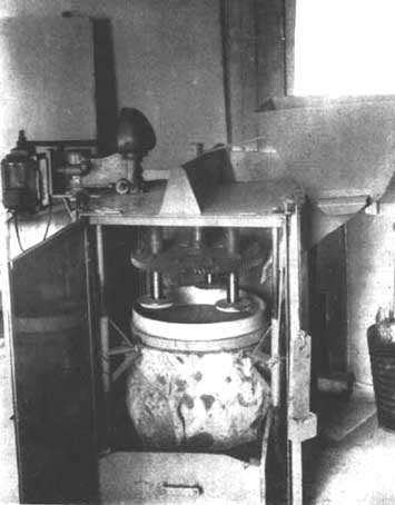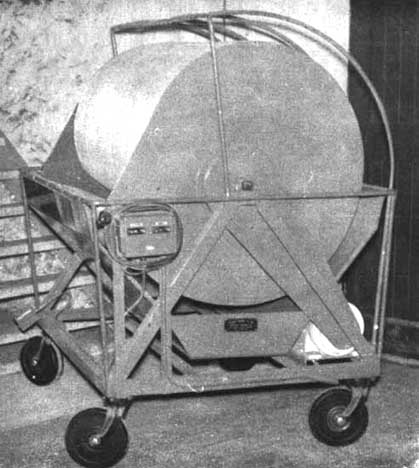 El cilindro, el motor eléctrico, el ventilador y los aparatos de regulación de la corriente de aire y la temperatura van encerrados en una caja de acero sobre la cual hay una cámara de secado previo con dos pisos. Los conos caen desde esta caja al cilindro donde se someten a temperaturas crecientes (40-45-50-55-60°C.) de 3 a 4 horas. Al final de la extracción, la inversión del giro hace que el cilindro se abra y los conos vacíos caigan mientras que los demás quedan en el horno (Figura 11). Los hornos de este tipo tienen una capacidad de trabajo de 25 a 30 Hl. de conos por día.