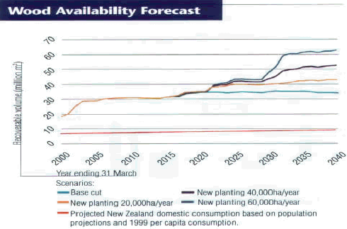 New Zealand's annual harvest is doubling to 36 million m3 by 2015 and doubling again by 2030. Note that all of this increased harvest is for international markets: