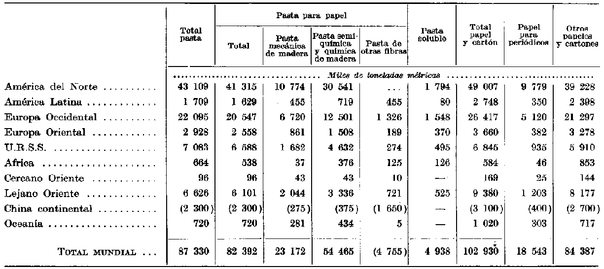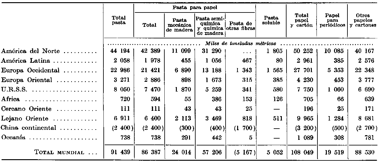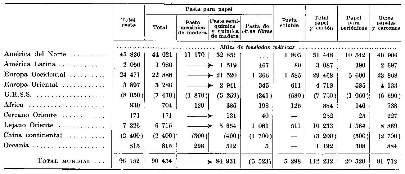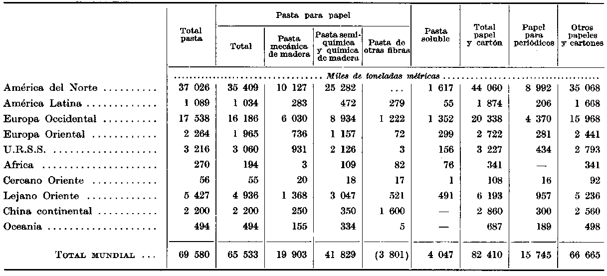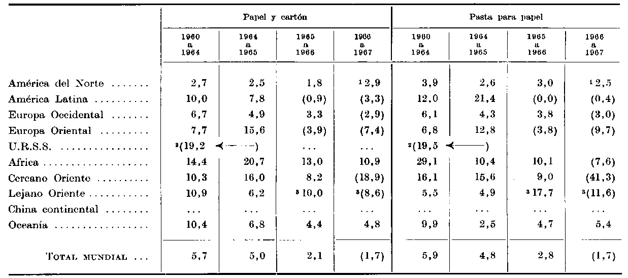 ¹ El pronóstico de 1959 (véase World demand for papar to 1975) ha sido posteriormente revisado para varias regiones del mundo (América Latina, Europa Occidental Europa Oriental, Lejano Oriente).