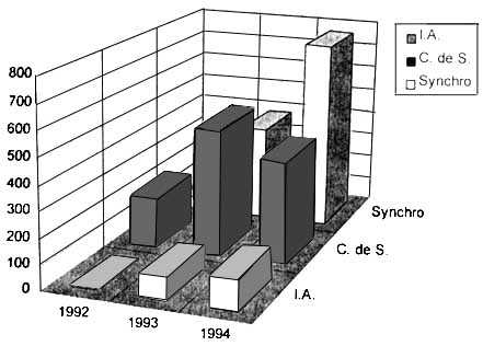 L'évolution quantitative de ces trois méthodes est présentée dans le graphique 1 ci-dessus. Cette évolution sur trois campagnes appelle trois remarques: un tassement de l'effectif touché par les centres de saillies, une très nette progression du nombre de chèvres entrant dans le programme de synchronisation des chaleurs suivie de saillies naturelles, une progression plus timide du nombre d'inséminations artificielles.