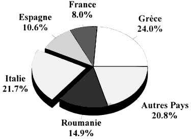 La quantité de fromage pur brebis produit annuellement en Sardaigne est estimée de 52 à 53 000 tonnes, dont 30 225 sont représentés uniquement par le Pecorino Romano (campagne fromagère 1993-94), à la production duquel contribue environ 62 % de la totalité du lait ovin produit en Sardaigne. Comme nous l'avons signalé précédemment et comme les données chiffrées le démontrent, la transformation du lait de brebis constitue la principale industrie agro-alimentaire de l'île. La quantité de fromages de brebis produite chaque année est répartie de la manière suivante: (tableau 2).