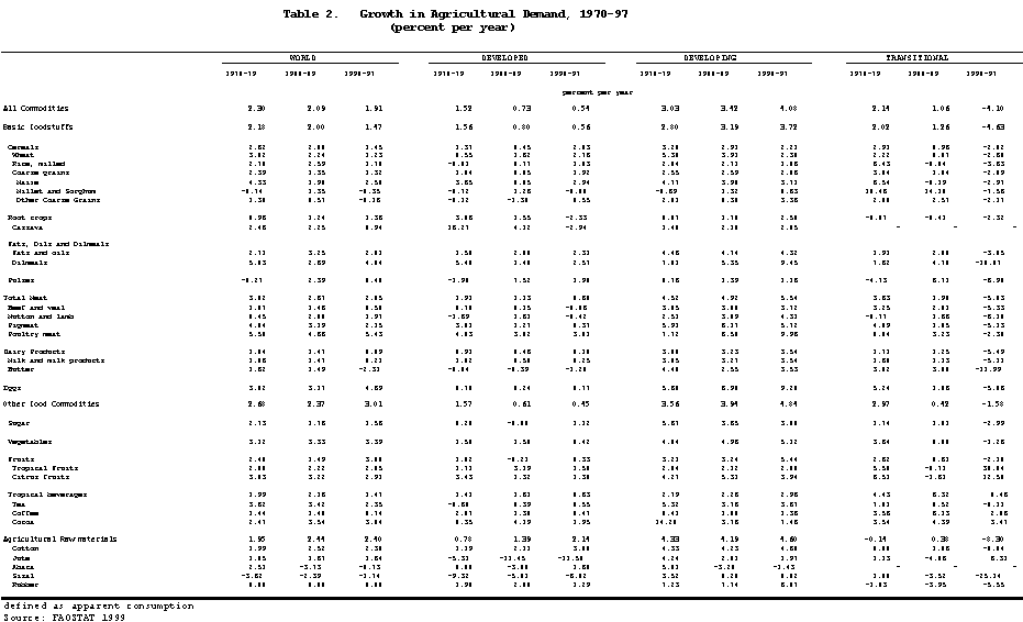 8 For further details, see: FAO (1999) Medium-term prospects for agricultural commodities. Projections to the year 2005, forthcoming, Rome.